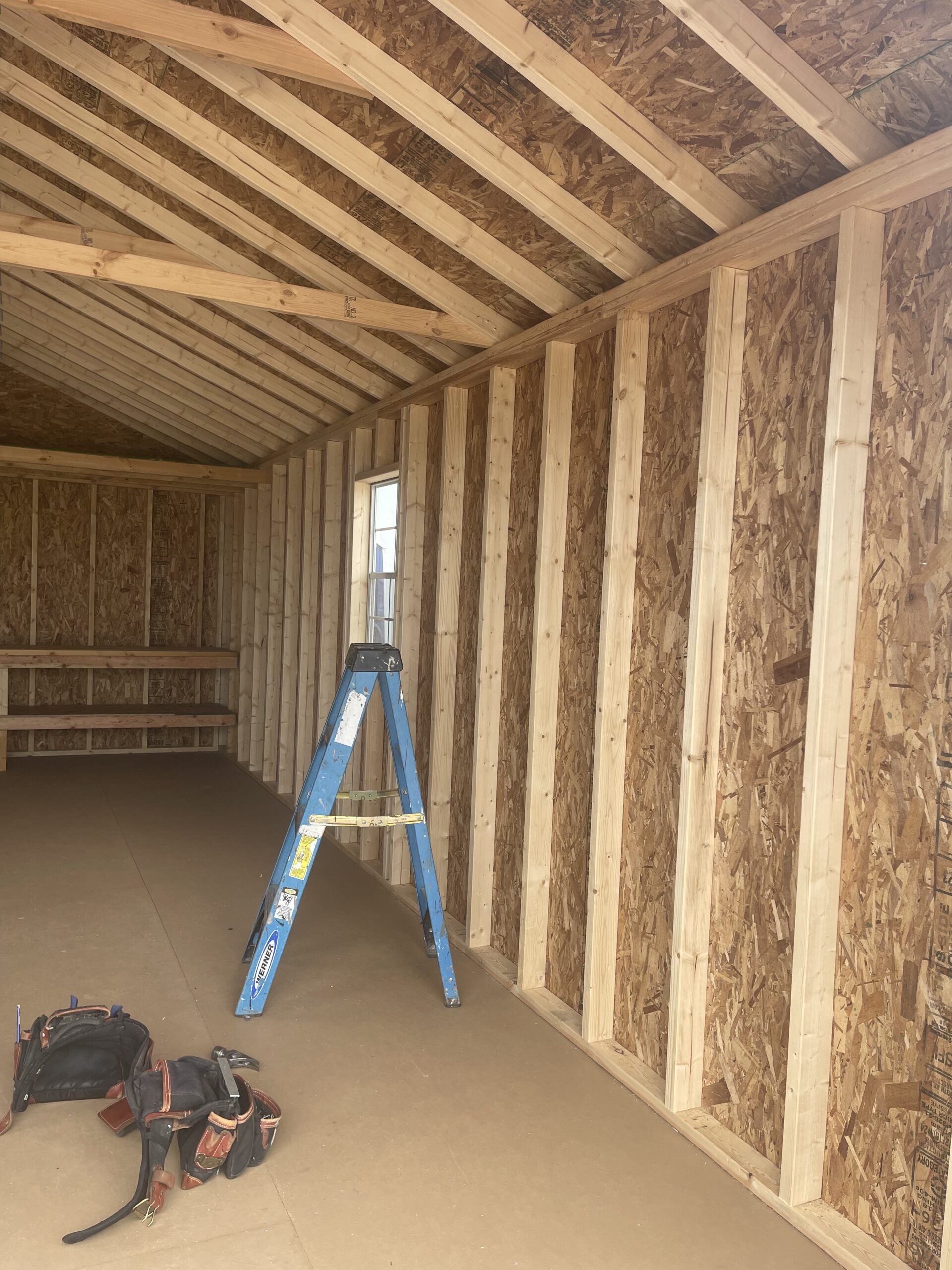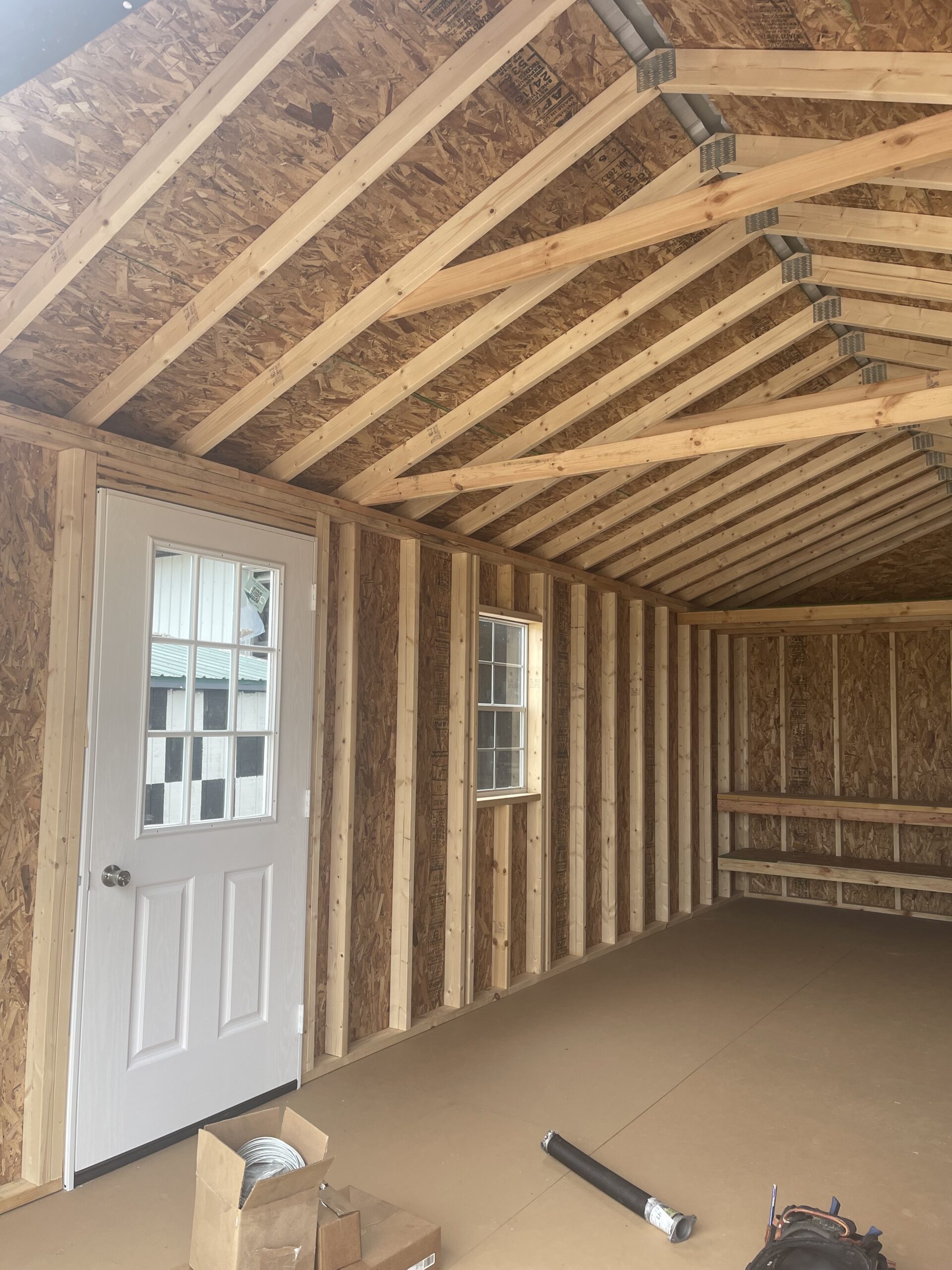 Great size to fit almost anywhere. Will store anything from a lawnmower to a full size vehicle. 2 windows and 9 lite door provide good lighting. Overhead rollup door and ramp provide easy access.